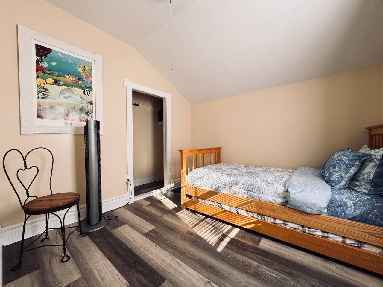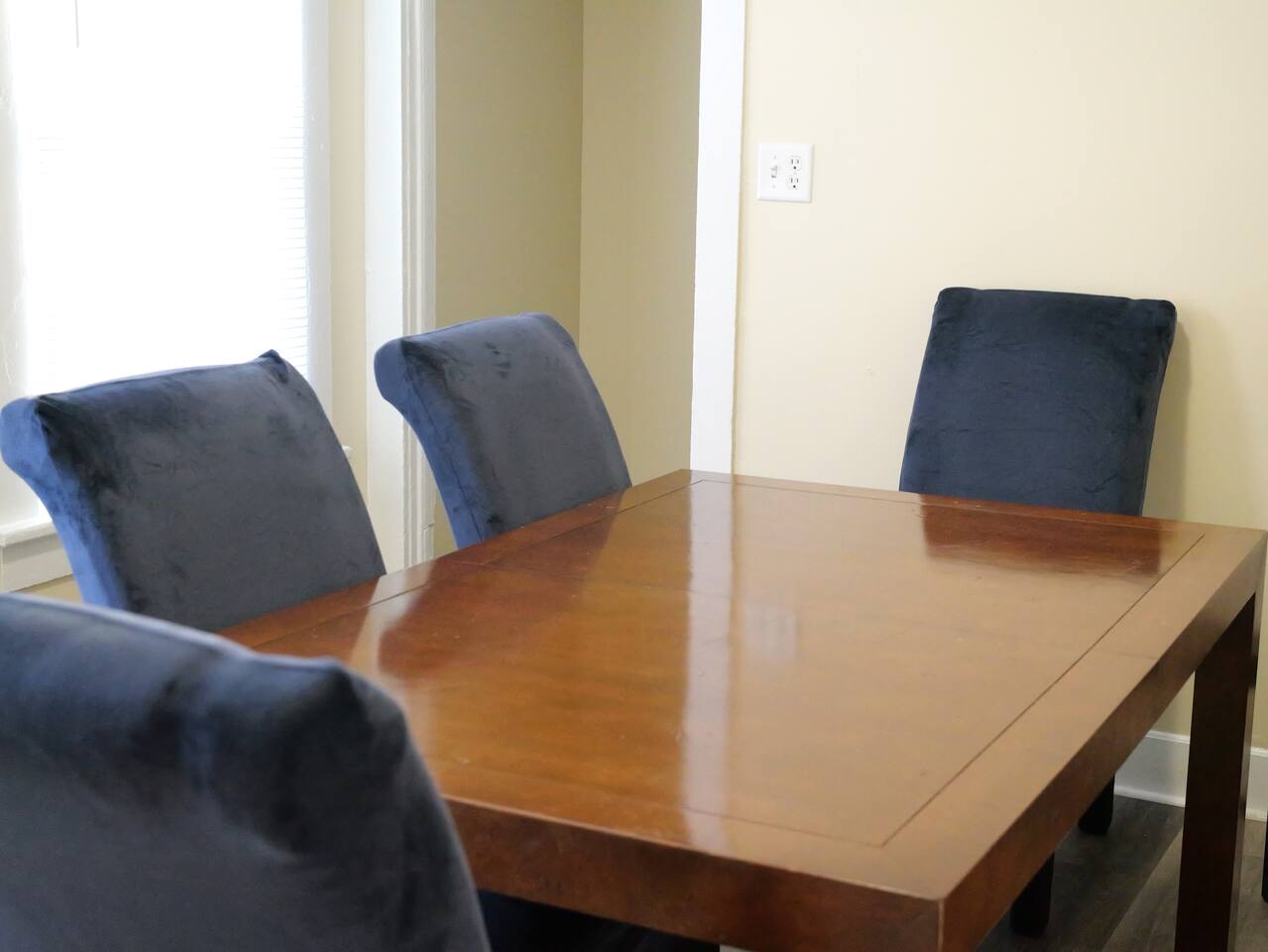 4 bedrooms with 2 king beds, 1 queen bed and 1 twin trundle bed to accommodate up to 8 guests. A pack n play portable crib is also on site. Fully equipped kitchen with a Keurig coffee maker, toaster, cooking range, microwave, washer and dryer. Separate living room and dining room areas for gathering.