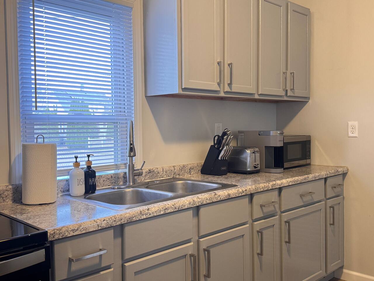 Newly remodeled 3-bedroom, 1.5-bath home with modern comforts. The house has free WiFi, central heating and AC. Enjoy a spacious living area with a 75” smart TV, a fully updated kitchen with new appliances, and an in-unit washer/dryer. This house has 2 king beds, 1 queen bed, and 1 full size futon. The pack n play is also on site for little one. Comfortable bedrooms and a convenient location make this the perfect stay for families, groups, or business travelers.